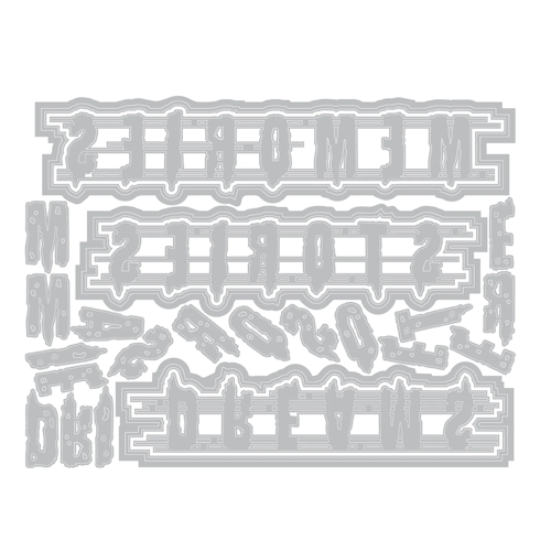 17 Stanzformen "Fröhliche Sätze", Grösse: 7.6 x 2.5 cm – 1.2 x 3.5 cm