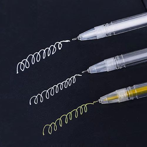 Weisser, goldener und silberner Gelstift.