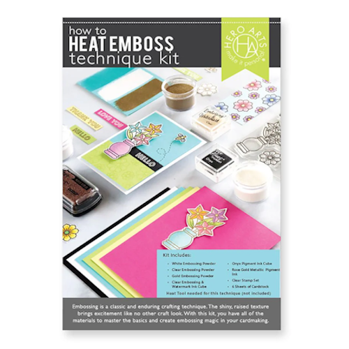 Mit dem Hero Arts Starter-Set zur Heissprägetechnik lernt Ihr die zeitlose und faszinierende Bastel-Technik des Prägens. Die glänzende, erhabene Textur verleiht dem Prägen einen besonderen Reiz wie keine andere Basteltechnik. Bitte beachtet, dass für diese Technik benötigter Heissluftfön / Ranger Heat It Craft Tool, nicht im Set enthalten ist.