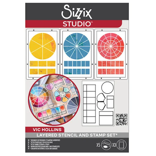Sizzix Studio Clear Stamps Set 5PK - 3PK Stencils - Artist Tools by Vic Hollins