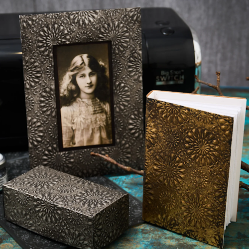1 XL A5 Prägeplatte "Blumendamast", Grösse: 15,2 x 21,5 cm