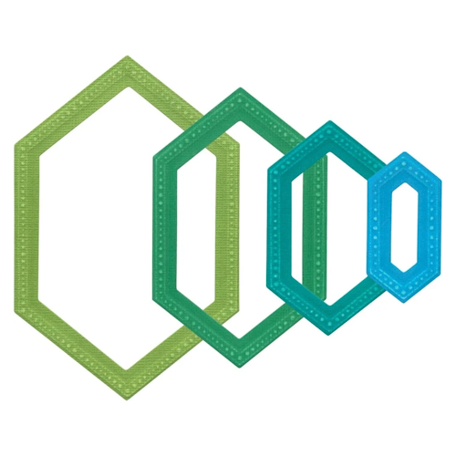 10 Stanzformen "Genähte Sechsecke", Grösse: 10.8 x 15.5 cm – 1.6 x 4.4 cm