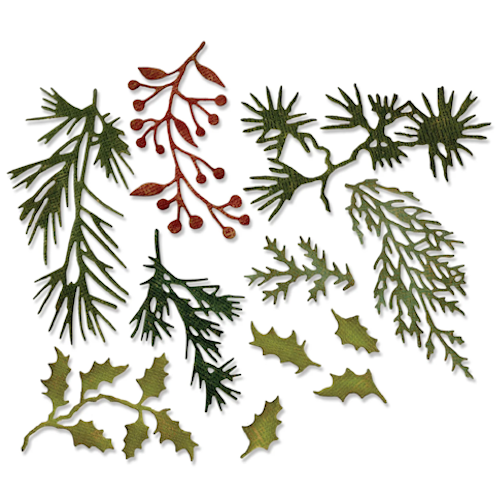 Thinlits Die Set 11PK - Holiday Greens, Mini by Tim Holtz