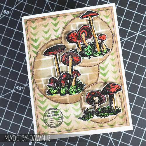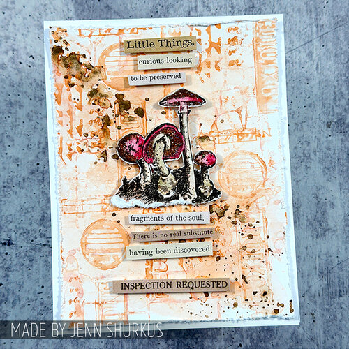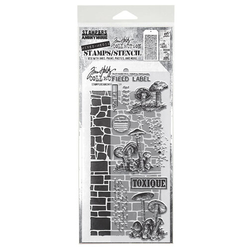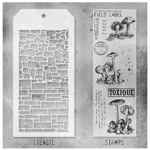 Das Tim Holtz Mixed-Media-Set enthält transparente Photopolymer-Stempel und eine speziell entwickelte Schablone zum Schichten, mit der Ihr Euren kreativen Arbeiten Struktur und Motive verleihen könnt. Verwendet es mit Euren Lieblingsfarben, -tinten, -sprays und -prägepasten. Die transparenten Stempelmotive stammen aus der Serie „Winzige Fliegenpilze“ (CMS377). Die Schablonen stammen aus den Sets „Stein“ (THS086) und „Schiefer“ (THS085).