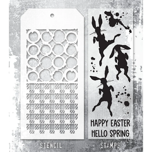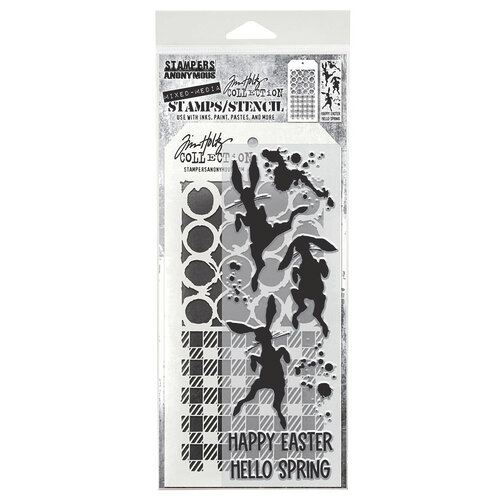Das Tim Holtz Mixed-Media-Set enthält transparente Photopolymer-Stempel und eine speziell entwickelte Schablone zum Schichten, mit der Ihr Euren kreativen Arbeiten Struktur und Motive verleihen könnt. Verwendet es mit Euren Lieblingsfarben, -tinten, -sprays und -prägepasten. Die Schablonen stammen aus den Kollektionen Ringer THS056 und Gingham THS134.